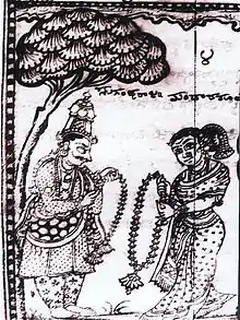 A Gandharva marriage (Sanskrit: गान्धर्व विवाह, pronounced gənd̪ʱərvə vɪvaːhə) (known as love marriage) is one of the eight classical types of Hindu marriage. This ancient marriage tradition from the Indian subcontinent was based on consensual sex between two people, with no rituals, witnesses or family participation.[1] The marriage of Dushyanta and Shakuntala was a historically celebrated example of this class of marriage.[2]