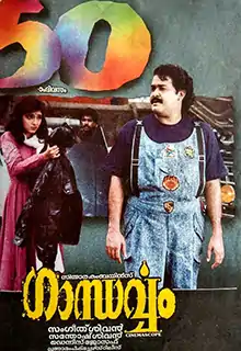 Gandharvam is a 1993 Indian Malayalam-language romantic comedy film directed by Sangeeth Sivan and written by Dennis Joseph from a story by Alex I. Kadavil and Sangeeth Sivan. It was produced by Suresh Balaje and stars Mohanlal and Kanchan (in her only Malayalam film), while Jagathi Sreekumar, Devan, Vijayakumar, Prem Kumar and Kaviyoor Ponnamma appears in supporting roles. The music was composed by S. P. Venkitesh.