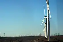 The Gansu Wind Farm Project or Jiuquan Wind Power Base is a group of large wind farms under construction in western Gansu province in China. The Gansu Wind Farm Project is located in desert areas near the city of Jiuquan in two localities of Guazhou County and also near Yumen City, in the northwest province of Gansu, which has an abundance of wind.[1] The complex is operating at below 40% utilization of the current 8 GW with a planned capacity of 20 GW.[2][3]