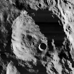 Ganswindt is a lunar impact crater that lies near the southern pole of the Moon's far side. It is attached to the southwestern exterior of the huge walled plain Schrödinger. Ganswindt partly overlies the smaller crater Idel'son to the south.