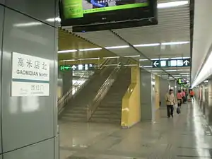 Gaomidianbei Station[1] (Chinese: 高米店北站; pinyin: Gāomǐdiàn Běi Zhàn) is a station on the Daxing line (through operation to Line 4) of the Beijing Subway.[2]