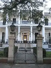 - Mayor Isaac W. Patton House, 1527 Washington Avenue, described in 1859 as "a handsome cottage residence," this Greek Revival house was erected for Lothrop Lewis Smith who purchased the site in 1853. It was his residence until he left New Orleans in 1859 and sold the house in 1861 to Mrs. Adolphe Jerome Odier. From 1873 until his death in 1890, it was the home of Isaac W. Patton, mayor of the City of New Orleans, 1878–1880. The entire square was sold in 1832 to H.W. Hills and William Lord Roberson by Matthew Morgan, Samuel J. Peters, Levi Peirce and William H. Chase, who in that year subdivided the Livaudais Plantation as Faubourg Livaudais, a part of the city of Lafayette that was annexed to the city of New Orleans in 1852. (Marker by New Orleans Landmarks Commission, 1985)[25]