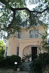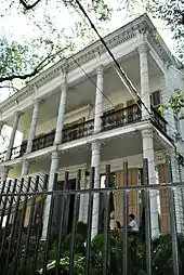 - Alfred Grima House, 2701 St. Charles Avenue, built in 1857 in the Greek Revival style by Cornelius Bicknell Payne, sold in 1861 to Thomas L. Clarke. Acquired from the Clarke family in 1890 by Alfred Grima, attorney, extensively remodeled in 1891, Paul Andry, architect, John McNally, builder. The side formal garden was completed in 1925, Charles R. Armstrong, architect, and the garden trellis was built in 1926, the last work of Samuel S. Labouisse, architect. Residence at the time of her death in 1981 of Clarisse Claiborne Grima, widow of Alfred Grima Jr., who donated it to the Historic New Orleans Collection. Acquired by private ownership in 1987. (Marker by Orleans Parish Landmarks Commission)[28]