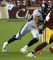 Garett Bolles (born May 27, 1992) is an American football offensive tackle for the Denver Broncos of the National Football League (NFL). He played college football at the University of Utah, and was drafted by the Broncos in the first round of the 2017 NFL Draft.