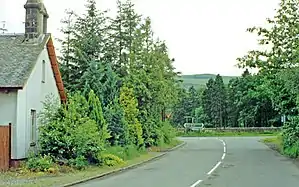 The station was opened on 26 May 1856 by the Forth and Clyde Junction Railway. To the west was the goods yard and to the west of the level crossing was the signal box, which opened in 1892. On the north side of the line were sidings which served a sawmill. The station initially had only one platform but another was later added. It closed on 1 October 1934[1] and the signal box was downgraded to a ground frame shortly after. It closed to goods on 5 October 1959.[2] The sawmill still exists as well as fragments of the original platform.[3]