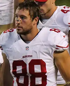 Garrett Bartholomew Celek[1] (born May 29, 1988)[1] is a former American football tight end who played his entire career for the San Francisco 49ers of the National Football League (NFL). He played college football at Michigan State. Celek signed with the 49ers as an undrafted free agent on May 4, 2012. He is the brother of former Philadelphia Eagles tight end Brent Celek.