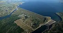 ![]() Aerial view of Garrison Dam, impounding Lake Sakakawea on the Missouri River | |