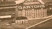 Gartons plc, as it became known, ceased trading in 1983.[40] The seed warehouse at Bridge Foot, Warrington, which had dominated the town centre skyline since 1910, was demolished in October 1986.[41] A hotel was built on the site.