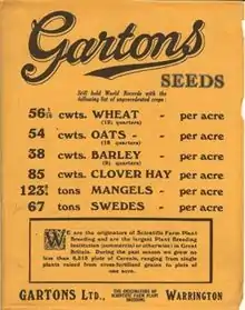Robert[3] and John Garton made a commercial start as R. & J. Garton.[4] They launched their first variety, 'Abundance' oat, in 1892.