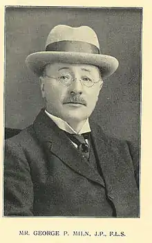 Born at Linlathen, Broughty Ferry in 1861, George Peddie Miln trained in a Dundee seed warehouse, the traditional Scottish training for a young man with ambition in the seed trade. He moved to Chester and ran one of its old established seed merchants before joining Gartons Limited as its first Managing Director in 1898. He was a member of Her Majesty's Board of Agriculture Seeds Advisory Council during the first World War. Both the Seeds Act 1920 and the formation of the National Institute of Agricultural Botany came about with his considerable encouragement during his three-year presidency of the Seed Trade Association of the United Kingdom. Of his eleven children, five trained in the seed trade. He was a Justice of the Peace in the City of Chester, a Fellow of the Linnean Society and a member of the Council of the Royal Agricultural Society of England. He died aged 68 following an unsuccessful operation.