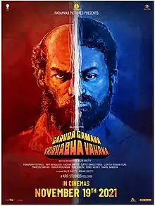Garuda Gamana Vrishabha Vahana (transl. One flies on Garuda, One mounts Vrishabha) is an 2021 Indian Kannada-language gangster film written and directed by actor-director Raj B. Shetty.[2][3][4] The film is produced by Ravi Rai Kalasa and Vachan Shetty under the banner Lighter Buddha Films. The film features Raj B. Shetty[5] and Rishab Shetty in the lead roles.[6][7] The music was scored by Midhun Mukundan. Both editing and cinematography were done by Praveen Shriyan. It was presented by Rakshit Shetty's Paramvah Studios[8] [9][10]