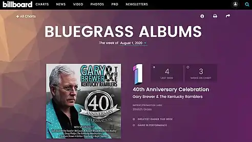 - "Gary Brewer Hits Number One on Billboard's Bluegrass Albums Chart With Star-Studded '40th Anniversary Celebration'". The Country Note. July 28, 2020. Retrieved September 4, 2020.