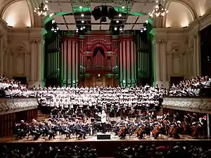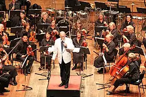 He was appointed an Officer of the New Zealand Order of Merit in 1996.[1] He held the position of Music Director/Conductor of the Auckland Symphony Orchestra from its formation in 1975 until 2010 when, on retiring, he was appointed Music Director Emeritus.[2] Daverne has also conducted many major orchestras around the world.[3] He has composed music for symphony orchestras, brass and military bands, children's songs and musicals with more than 500 television and radio advertising jingles, film soundtracks and pop songs.[4] Daverne is New Zealand's most prolific composer and arranger of music for the accordion.[5] As a music producer Daverne has released over forty albums achieving one Platinum and two Gold records.[6]