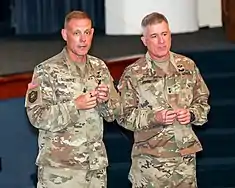 From June 2018 to July 2021, Johnston moved to Fort Belvoir, Virginia, to lead U.S. Army Intelligence and Security Command (INSCOM), the Army component of the U.S. Intelligence Community and the Central Security Service.[3][4][5][6] Despite the limitations imposed by the COVID-19 pandemic, during his tenure Johnston spearheaded the development of Army Counterintelligence Command and activation of a dedicated military intelligence group for Army Cyber Command. As commander of INSCOM, Johnston also led investigations into the suicides of his senior enlisted advisor, Command Sergeant Major Eric M. Schmitz, and clandestine intelligence operative sergeant first class Michael Froede.[7]