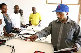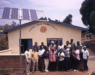 KSTF, the first dedicated training centre for solar energy technology in the African Great Lakes, was founded by Oswald Kasazi in 1993. During the following decade KSTF gave regular three-week-long training courses which were attended by people from all over the African Great Lakes region (Tanzania, Kenya, Uganda), as well as from further afield. The courses were held in partnership with Alternative Energy Africa (EAA), run by Mark Hankins[2] and Daniel Kithokoi,[3] who were based in Nairobi, Kenya. Makale managed the practical sessions as well as arranging for the field-trips during which course participants installed solar electric domestic systems in the Karagwe district.
