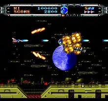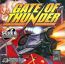 Gate of Thunder[lower-alpha 1] is a 1992 scrolling shooter video game developed by Red Company and published by Hudson Soft for the TurboGrafx-CD. It was the first game released in North America to support the Super CD-ROM² format and served as one of the pack-in games for the TurboDuo, a two-in-one system which runs both TurboGrafx-CD and TurboGrafx-16 titles, where it was bundled with Bonk's Adventure, Bonk's Revenge and Bomberman on the same disc. In the game, the player controls the Hunting Dog space fighter craft, piloted by space cop Hawk. Alongside his ally Esty, piloting the Wild Cat support ship, Hawk must stop General Don Jingi and his Obellon armada from obtaining the powerful "Starlight" energy source from planet Aries.