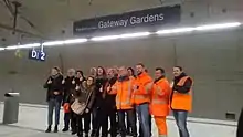 Mit einem Sonderzug hat die Deutsche Bahn (DB) am Montag die neue S-Bahn-Station Gateway Gardens offiziell in Betrieb genommen. Nachdem die geladenen Gäste ausgestiegen waren, ging die Arbeit an dem unterirdischen Halt weiter. Am Sonntag soll alles fertig sein.