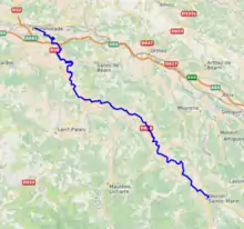 The Gave d'Oloron is a river of south-western France near the border with Spain. It takes its name from the city Oloron-Sainte-Marie, where it is formed from the rivers Gave d'Aspe and Gave d'Ossau. It joins the Gave de Pau in Peyrehorade to form the Gaves réunis, a tributary of the Adour. The Gave d'Oloron is used for fishing. The river is 148 kilometres (92 mi) long, including its source rivers Gave d'Ossau and Gave du Brousset.[1] Near Sauveterre-de-Béarn it takes up its largest tributary, the Saison.