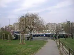 The first plans for the construction of a housing estate were created in the 1970s. Construction began in 1983, with prefabricated panels coming from the factories in Győr and Budapest. The first buildings to be constructed were in the lower part of the hill; the first apartment – which was also the 200,000th apartment in the country with central heating – was ready by March 1984. Public transport service started on May 1, 1984, with bus line 153 which has been in operation ever since.[1] Since the houses on the upper part of the hill were still under construction, the terminus of the bus was at Nagyszeben tér and was moved up to Gazdagréti tér in 1987; a new bus line, line 139 started operation at the same time. The first school year at Törökugrató street primary school started in 1984, another primary school was opened in 1985 in Csíkihegyek street. A nursery school opened in 1985, a grocery store in 1986, a doctor's office and a small library in 1987 and a high school in 1990.