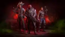 Players assumes control of Scorpio Squad, a trio of playable characters from the "Escape" multiplayer mode of Gears 5: Jeremiah Keegan, a member of the Onyx Guard, an elite special operations unit which serves the Coalition of Government ("COG"), and de facto leader of Scorpio Squad; Lahni Kaliso, a COG operative descended from the indigenous peoples of the South Islands who was previously convicted of misconduct; and Leslie "Mac" Macallister, an Outsider delivery driver who lost his village community, including his son, to the emergent Swarm. Each character has access to a special ability which may be upgraded with collectible items over the course of the three hour campaign: Keegan may replenish the squad's ammo, Lahni may temporarily enhance the potency of her melee attacks with electricity, and Mac may erect a mobile energy shield in front of him to defend against incoming projectile attacks.[2] The Hivebusters campaign may be played in cooperative mode by up to three players, either split-screen or online.[6]