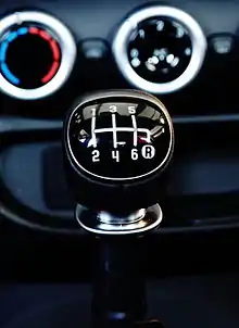 A gear stick (rarely spelled gearstick),[1][2] gear lever (both UK English), gearshift or shifter (both U.S. English), more formally known as a transmission lever, is a metal lever attached to the transmission of an automobile. The term gear stick mostly refers to the shift lever of a manual transmission, while in an automatic transmission, a similar lever is known as a gear selector. A gear stick will normally be used to change gear whilst depressing the clutch pedal with the left foot to disengage the engine from the drivetrain and wheels. Automatic transmission vehicles, including hydraulic (torque converter) automatic transmissions, automated manual and older semi-automatic transmissions (specifically clutchless manuals), like VW Autostick, and those with continuously variable transmissions, do not require a physical clutch pedal.