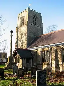 Gedney Hill Grade II* listed Anglican parish church is dedicated to the Holy Trinity.[7] Dating from the late 14th century, it was heavily restored in 1874-75 by James Fowler. The restoration included the entire rebuilding of the outer walls. The arcades are supported by octagonal oak piers, and the roof by Perpendicular-style tie-beams. The stained glass east window is by Ward and Hughes.[8][9] At the south of the churchyard, which also contains war graves of two airmen of the Second World War,[10] is a listed 15th-century cross, restored in 1918.[11]