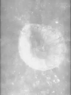 This crater was formerly designated Gilbert D before being assigned a unique name by the IAU in 1976.[1]