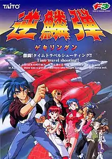 Gekirindan[lower-alpha 2] is a 1995 vertically scrolling shooter arcade video game originally developed and published by Taito in Japan, America and Europe. Set in the year 3195, where a robot known as "Huge Boss" stole a newly developed time machine to travel back in time and rewrite human history, players assume the role of one of the six fighter pilots taking control of their own space fighter craft in an effort to overthrow the evil entity from altering history.