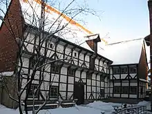 The large building on the corner of Gelber Stern and Brühl is a former hospital which was built in a classicist style 1833–1840. Today it is used as a priests' seminary. The oldest half-timbered house of Hildesheim, which is used as a library today, can be visited in its inner court. It was built in a gothic style at the end of the 15th century.[4]