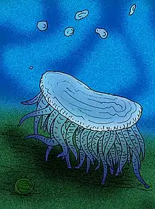 Gelenoptron tentaculatum is an extinct, cnidarian-like organism represented by a single specimen and counterslab from the Burgess Shale. The holotype of G. tentaculatum was originally identified as a second specimen of the Animalia incertae sedis, Redoubtia, but established as a separate genus by Simon Conway Morris in 1993. A reflective shield recalls the float of chondrophore hydrozoans.[1]