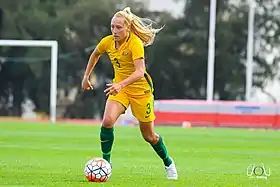 ![]() Simon playing for the Matildas at the 2017 Algarve Cup | |||