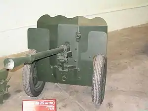 French infantry divisions had three regiments of three battalions each, two regiments of artillery, a cavalry reconnaissance battalion and service troops. Armament included modern mortars,[nb 2] fifty-two 25 mm Hotchkiss anti-tank guns and six to eight 47 mm APX anti-tank guns, Canon de 75 M(montagne) modele 1928 and Canon de 155mm GPF field artillery pieces of First World War vintage. In selected divisions, one group of twelve 155 mm guns was replaced by twelve modern Canon de 105 court mle 1935 B guns. Motorised infantry divisions had a cavalry battalion with armoured cars. The infantry-support tank battalion involved in the Battle of Gembloux was equipped with 45 Renault R35 machines: slow, manned by two reservists, lacking radio and armed with a low-velocity AC 37 anti-tank gun of limited effect in the anti-tank role, the Renault nonetheless was powerfully armoured for its time and made a small target. The French infantry divisions which fought at Gembloux also had light automatic anti-aircraft weapons.[21]