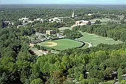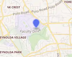 The ballpark was part of a complex sitting north of Faculty Drive (home plate / first base side) and a short distance east of Wingate Road (third base side). There were trees beyond right field, and a small practice golf course beyond left and center field. The ballpark sat less than a mile and almost directly west of BB&T Field and Ernie Shore Field.[5]