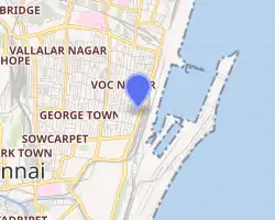 Chennai General Post Office (GPO) is located on Rajaji Salai at Parry's Corner, Chennai. It functions in a building built in 1884. It is located opposite to the Chennai Beach suburban railway station. Chennai GPO covers an area of about 23.33 km2 (9.01 sq mi) and serves a population of around 220,000. It has no sub- or branch offices.[1]