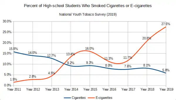 Members of Generation Z were born between the mid-to-late 1990s and early 2010s, meaning the first wave came of age during the second decade of the twenty-first century,[4] a time of significant demographic change due to fertility differentials and immigration.[5] Youth of the early twenty-first century reach puberty earlier than their counterparts from the previous century.[6] They have higher incidents of eye problems,[7][8] allergies,[9][10] awareness and reporting of mental health issues,[9][11] suicide,[12] and sleep deprivation,[13][14] but lower rates of adolescent pregnancy.[15][16] They drink alcohol and smoke traditional tobacco cigarettes less often,[17] but are more likely to consume marijuana[18][19] and electronic cigarettes.[20]
