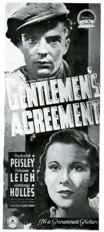 Gentlemen's Agreement is a 1935 British, black-and-white, adventure film directed by George Pearson and starring Frederick Peisley as Guy Carfax and Vivien Leigh as Phil Stanley.[1] It was produced by British & Dominions Film Corporation and Paramount British Pictures. According to the British Film Institute, there is no known print of this film.