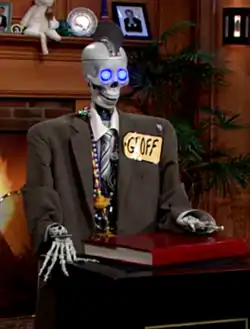 Geoff Peterson is an animatronic human skeleton that served as the sidekick on the late-night talk show The Late Late Show with Craig Ferguson. He was voiced and operated by Josh Robert Thompson and first appeared on The Late Late Show on April 5, 2010. Often referred to as a "robot skeleton", Peterson is a radio-controlled animatronic robot puppet designed and built by Grant Imahara of MythBusters.[1]
