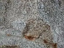 In the south east of the country is an alkaline granite from a batholith called Mt-Louis-Andorra Batholith. It extends into Spain and covers an area of 600 km2 (230 sq mi). Different rock composition zones occur, with monzogranite found at the centre, quartz diorite at the edge and granodiorite in intermediate parts. The batholith has caused metamorphism on its western edge. The base of the batholith is exposed in the east of Andorra.