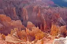 The Colorado Plateau is a stable region dating back at least 600 million years. As a relative lowland, it had been a site of deposition for sediments eroded from surrounding mountain regions.[38] Then, during the Laramide Orogeny, the entire plateau was uplifted until about six million years ago. Erosion during and following the uplift removed sediment from the plateau. This load removal resulted in isostatic uplift and a second passive rise for the plateau.[39]
