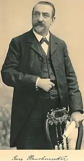 On 1 August 1860 Georg Wilhelm Rauchenecker received a passport to travel to France: initially he went and worked as first violin at the Grand Théâtre in Lyon.[8] In 1862 he was appointed conductor in Aix-en-Provence and then in 1864 he took the post of chief conductor of the theatre orchestra in Carpentras.[9] Here, in 1866, he married Elisabeth Antoinette Emilie Fournial (1842–1870), a lecturer. Their twins, Alban and Margarethe were born in Carpentras on 8 September 1867. In 1868 Rauchenecker accepted a position in Avignon as chief conductor of the opera orchestra and director of the conservatoire.[4] After being expelled from France as a German citizen when the Franco-Prussian War broke out in 1870, he settled in Switzerland.