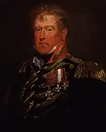 In 1815 Wood commanded the whole of the royal artillery in the Waterloo Campaign, in the battles of Quatre Bras (16 June) and of Waterloo (18 June), in the march to Paris and the operations against the fortresses of Maubeuge, Landrecy, Mariembourg, Philippeville, and Cambray, and at the entry into Paris on 7 July. For his services in this campaign Wood was mentioned in despatches, was made a Companion of the Order of the Bath (CB) on the 22 May 1812 and knighted when proxy to Sir J. C. Sherbrooke.[1] He also received the Waterloo Medal, and was permitted to accept and wear the insignia of the fourth class of the Order of St. Vladimir (K.St.V) of Russia, the third class of the Order of Wilhelm of the Netherlands, and the knighthood of the Military Order of Maria Theresa (KMT) of Austria. The following year he was made a knight commander of the royal Royal Hanoverian Guelphic Order (KCH). He commanded the British artillery of the army of occupation in France until 1819, when he returned to England.