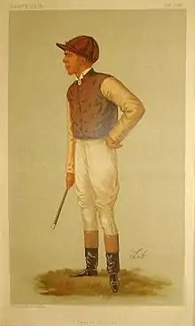 Colin George Barrett (29 May 1863 – 25 February 1898), was a leading jockey in the United Kingdom in the 1880s and 1890s. He was born on 29 May 1863 in Metfield, Suffolk. He was apprentice jockey to W. H. Manser at Newmarket. His first ride came in July 1877, with him riding his first winner. During his early career he could do weights as low at 5 st 7 lb (34.9 kg). He rode six winners in his first year. His first classic win came the 1885 1000 Guineas aboard Farewell. He rode the unbeaten Ormonde to victory in the 2000 Guineas in 1886 after regular jockey Fred Archer riding Saraband. In 1892 he rode Orme and La Fleche to a number of top class victories. Barrett was never champion jockey, but was second four times, including finished four winners behind Morny Cannon in 1891. He stopped riding after 1894, when his health began to fail, and died on 25 February 1898.