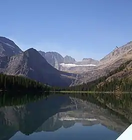 Grinnell made hunting trips to the St. Mary Lakes region of what is now Glacier National Park in 1885, 1887 and 1891 in the company of James Willard Schultz, the first professional guide in the region. During the 1885 visit, Grinnell and Schultz while traveling up the Swiftcurrent valley observed the glacier that now bears his name. Along with Schultz, Grinnell participated in the naming of many features in the Glacier region.[3] He was later influential in establishing Glacier National Park in 1910. He was also a member of the Edward Henry Harriman expedition of 1899, a two-month survey of the Alaskan coast by an elite group of scientists and artists.