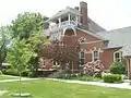 The George Brown Mansion is an example of the Queen Anne's Style of architecture. It was a dominant style during the 1880s and 1890s, the time when Chesterton was a growing city in northern Indiana. George Brown arrived in the United States in 1852.[2] In 1855, he married Charity Carter, daughter of a local family. He became a successful farmer in the township. The farm was located on what is 950 North, west of 400 East. By the year 1882 he was operating a farm of 900 acres (360 ha). He had expanded into supplying cordwood to the Porter brickyards after 1870. George and Charity had ten children. In 1884 George Brown bought 120 acres (0.49 km2) in the town of Chesterton from the John Thomas family. His plans called for a retirement home on this site. He engaged Chicago architect Cicero Hine to design the house.[2] In 1891 the family sold all but 10 acres (40,000 m2). It was the same year, that he built a brick store downtown at Calumet and Broadway. During the 1902 fire, it was the only store to survive. Charity Brown died in 1895 at 56. George died in 1899 at the age of 71. After a probate fight, his son John Franklin (Frank) moved into the house with his family.[2]