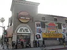 Carlin was present at Lenny Bruce's arrest for obscenity. As the police began attempting to detain members of the audience for questioning, they asked Carlin for his identification. Telling the police he did not believe in government-issued IDs, he was arrested and taken to jail with Bruce in the same vehicle.[29] In the late 1960s, Carlin was making about $250,000 annually.[30] Over time, Carlin changed his routines and his appearance; he grew his hair long, sported a beard and earrings, and typically dressed in T-shirts and blue jeans. He lost some TV bookings by dressing strangely for a comedian at a time when clean-cut, well-dressed comedians were the norm. He hired talent managers Jeff Wald and Ron De Blasio to help him change his image, making him look more "hip" for a younger audience. Wald put Carlin into much smaller clubs such as The Troubadour in West Hollywood and The Bitter End in New York City, and later said that Carlin's income was thus reduced by 90% but his later career arc was greatly improved.[30] In 1970, record producer Monte Kay formed the Little David Records subsidiary of Atlantic Records, with comedian Flip Wilson as co-owner.[31] Kay and Wilson signed Carlin away from RCA Records and recorded a Carlin performance at Washington, D.C.'s Cellar Door in May 1971, which was released as FM & AM in January 1972. De Blasio was busy managing the fast-paced career of Freddie Prinze and was about to sign Richard Pryor, so he released Carlin to Little David general manager Jack Lewis, who, like Carlin, was somewhat wild and rebellious.[32] Using his own persona as a springboard for his new comedy, he was presented by Ed Sullivan in a performance of "The Hair Piece" and quickly regained his popularity as the public caught on to his sense of style.[33]