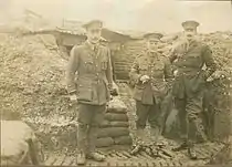 On the outbreak of World War I, Carter-Campbell proceeded to France[7] with the 8th Division as second-in-command of the 2nd Battalion, Cameronians (Scottish Rifles)[8] and was wounded during the Battle of Neuve Chapelle[9] on 10 March 1915,[10] being awarded the Distinguished Service Order and also the Order of St. Stanislaus. He subsequently commanded the battalion until 23 September 1915, when he was promoted brigadier general to command the 94th Infantry Brigade. While holding the latter command, he was gazetted brevet lieutenant colonel and finally Brevet-Colonel.[11]