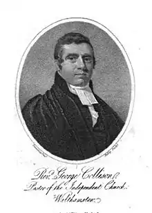 Collison was born in Beverley, Yorkshire, on 6 January 1772, and became articled to a solicitor in Bridlington. Taking a keen interest in the local Independent Chapel, he became an early Sunday school teacher, and in 1792 decided to give up law and train full-time as a minister at Hoxton College near London. In 1797 he settled close to London in the village of Walthamstow in Essex to carry out pastoral duties, becoming the minister of Marsh Street Congregational Chapel, in whose grounds he was buried in 1847. He undertook this ministerial role whilst also tutoring at Hoxton—until ill health led him to give up the latter in 1801. Detached from Hoxton, he was sought after by other educationalists, and was attracted to an offer to become the founding President and first tutor of a new theological institution, the Hackney Academy. This was to be based on the non-denominational principles George Collison was already familiar with, in his early associations with the London Missionary Society.