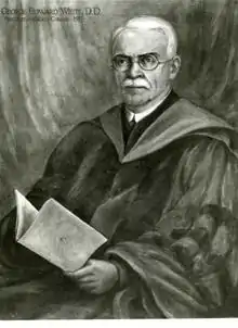 On October 14, 1861, George Edward White was born in Marash, Ottoman Empire where his Christian missionary parents had arrived in 1856.[2] He then traveled to the United States to attend Iowa College in Grinnell, Iowa and marry. Deciding upon a pastoral career, White then attended the Hartford Theological Seminary during the Russo-Turkish War (1877-1878) and continued his education at Oxford University in England.[2] Upon returning to Iowa, he received a Doctor of Divinity degree from Grinnell College.[2]