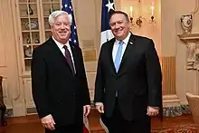 In 2017, George Glass was nominated by President Donald Trump[3] to become Ambassador Extraordinary and Plenipotentiary of the United States of America to the Republic of Portugal. The United States Senate confirmed his nomination[4] on August 3, 2017.[5] He presented his credentials to the President of the Portuguese Republic, Marcelo Rebelo de Sousa, on August 25, 2017.[6]