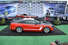 On August 17, 2013 Saleen introduced a limited edition Saleen | George Follmer Edition Ford Mustang. Based on the #16 1969 Boss 302 Mustang racecar that he drove in the 1969 SCCA Trans-Am series, the 2014 Saleen/Follmer Edition was period correct with its livery, naturally aspirated 495HP[3] 5.0L high revving engine, track tuned suspension, and 6-speed manual transmission. Production was limited to 250 units.[4]